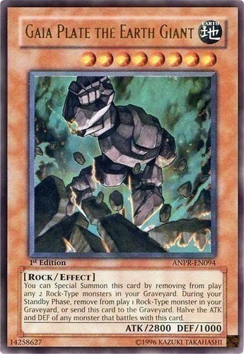 | Text | You can Special Summon this card by removing from play any 2 Rock-Type monsters in your Graveyard. During your Standby Phase, remove from play 1 Rock-Type monster in your Graveyard, or send this card to the Graveyard. Halve the ATK and DEF of any monster that battles with this card. |
