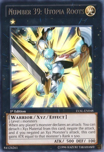 | Text | 2 Level 1 monsters When any player's monster declares an attack: You can detach 1 Xyz Material from this card; negate the attack, and if you negated an Xyz Monster's attack, this card gains ATK equal to that monster's Rank x 500. |