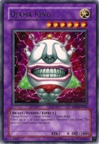 | Text | "Ojama Green" + "Ojama Yellow" + "Ojama Black" Select up to 3 of your opponent's Monster Card Zones. The selected zones cannot be used. |