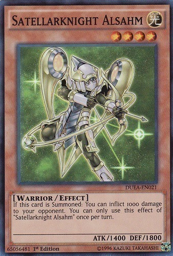 | Text | If this card is Summoned: You can inflict 1000 damage to your opponent. You can only use this effect of "Satellarknight Alsahm" once per turn. |