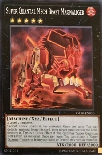 | Text | 2 Level 5 monsters Cannot attack unless it has material. Once per turn: You can detach 1 material from this card, then target 1 monster on the field; destroy it. This is a Quick Effect if this card has "Super Quantum Red Layer" as material. Once per turn: You can attach 1 "Super Quantum" monster from your hand or field to this card as material. |
