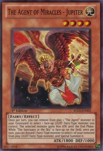 | Text | Once per turn, you can remove from play 1 "The Agent" monster in your Graveyard to select 1 face-up LIGHT Fairy-Type monster you control. The selected monster gains 800 ATK until the End Phase. While "The Sanctuary in the Sky" is face-up on the field, once per turn, you can discard 1 Fairy-Type monster to select 1 of your removed from play LIGHT Fairy-Type monster, and Special Summon it. |
