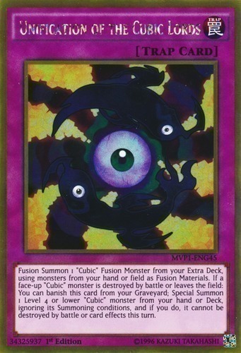 | Text | Fusion Summon 1 "Cubic" Fusion Monster from your Extra Deck, using monsters from your hand or field as Fusion Materials. If a face-up "Cubic" monster is destroyed by battle or leaves the field: You can banish this card from your Graveyard; Special Summon 1 Level 4 or lower "Cubic" monster from your hand or Deck, ignoring its Summoning conditions, and if you do, it cannot be destroyed by battle or card effects this turn. |